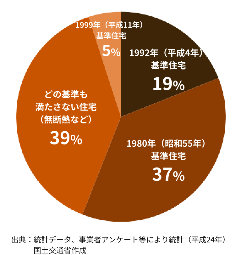 ほぼ「無断熱」住宅が40%近くも残されています。